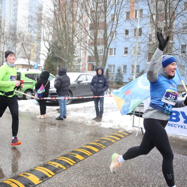 W tym roku towarzyszyła nam iście zimowa aura. Padający śnieg nadawał niezwykłego klimatu, ale nie ułatwiał trasy, jednak nasi dzielni biegacze nie dali za wygraną i zmęczeni, ale usatysfakcjonowani przekroczyli linię mety. Na szczęście po chwili mogli nacieszyć się ciepłym poczęstunkiem, który przygotowali dla nich organizatorzy.