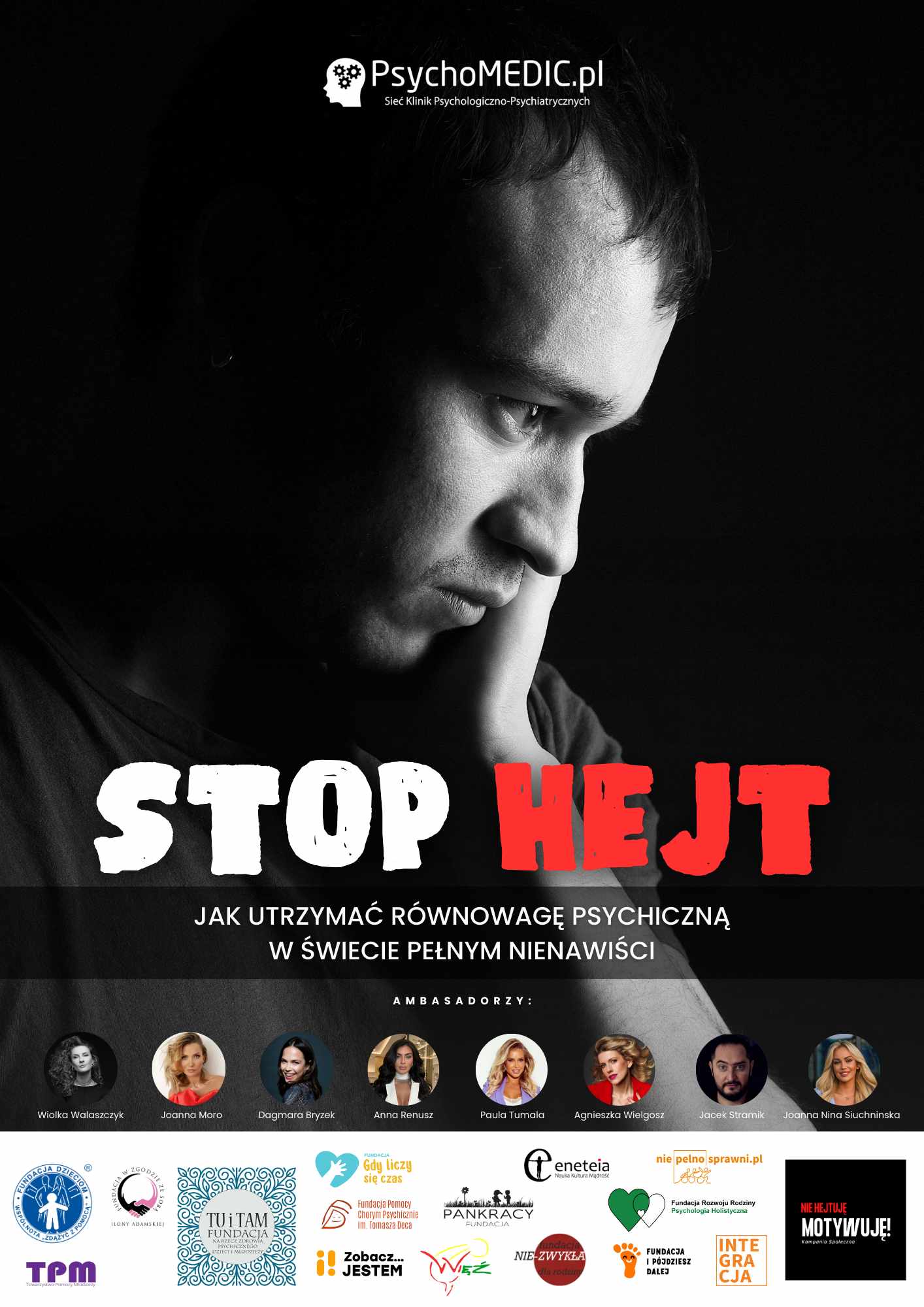 Hejt to zjawisko, z którym może się zetknąć każdy z nas. Szczególnie narażone są na niego dzieci – zarówno w internecie, jak i w szkole. Do nas – dorosłych – należy ochrona i edukacja najmłodszych. Jak radzić sobie z hejtem? Jak pomóc osobie, która jest na niego narażona? Na te i inne pytania odpowiadają specjaliści PsychoMedic.pl w najnowszym e-booku „Stop hejt. Jak utrzymać równowagę psychiczną w świecie pełnym nienawiści?”. Nasza Fundacja objęła ten e-book patronatem.