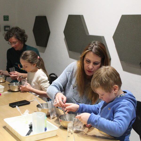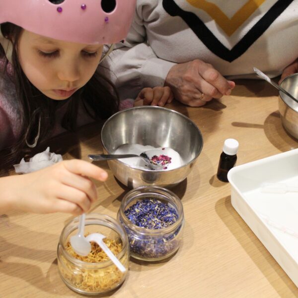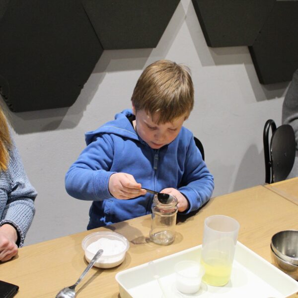 Podczas zajęć było mnóstwo naukowej zabawy — eksperymenty z użyciem wody, oleju, sody a nawet rodzynek! Na zakończenie uczestnicy przygotowali pachnący puder do kąpieli, który mogli zabrać do domu.