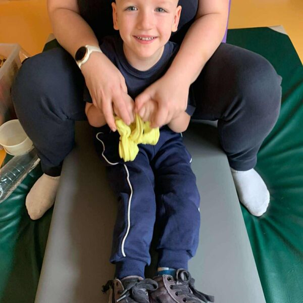 Olek jest wcześniakiem — urodził się już w 28. tygodniu ciąży. Z czasem lekarze stwierdzili u niego dziecięce porażenie mózgowe, lecz diagnoza pojawiła się dopiero, gdy miał 15 miesięcy. Jego czujna mama rozpoczęła jednak rehabilitację znacznie wcześniej, intuicyjnie wyczuwając, że każdy ruch może być szansą na lepszy rozwój synka. Dzięki temu terapia towarzyszy Olkowi od samego początku i stała się elementem jego codzienności.