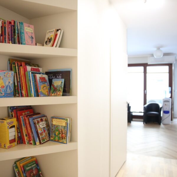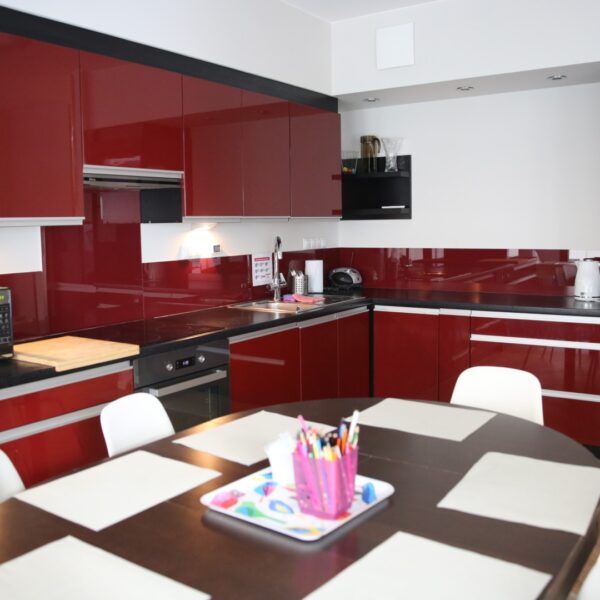 Apartament rodzinny zlokalizowany jest na warszawskich Bielanach. Znajduje się w odległości ok. 1,5 km od Ośrodka Rehabilitacji AMICUS, w pobliżu przystanku autobusowego. Apartament powstał z myślą o rodzinie, która ceni sobie kameralność i intymność. Jest przygotowany na przyjęcie 2-4 osób. Goście mają do dyspozycji część jadalną z aneksem kuchennym oraz część wypoczynkową, wyposażoną w rozkładaną kanapę z funkcją spania.