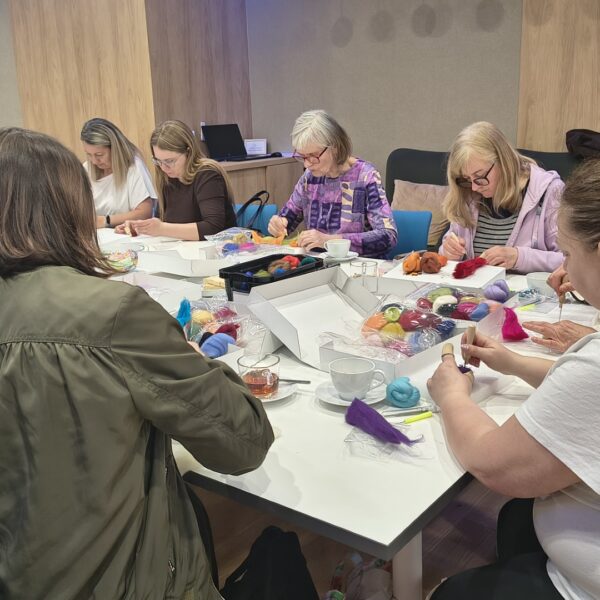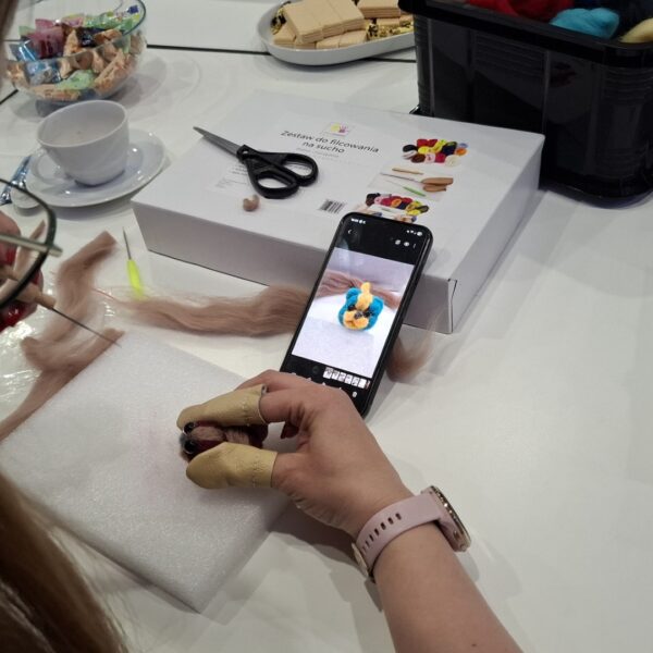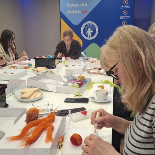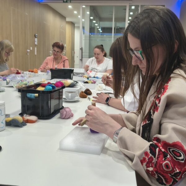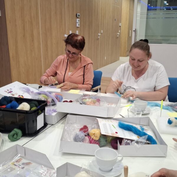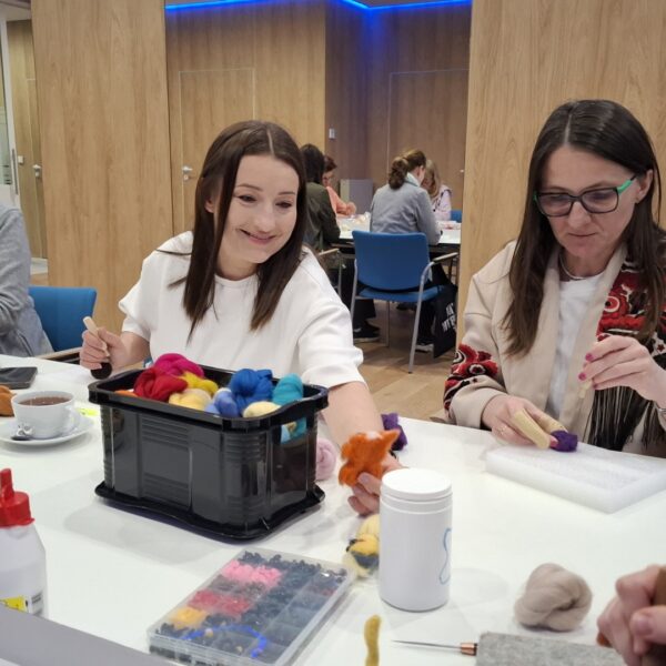 20 kwietnia odbyło się pierwsze spotkanie w ramach naszego nowego cyklu „PasjoMatki”. Podczas warsztatów uczestniczki – pod okiem wolontariuszki Edyty – uczyły się filcowania na sucho. Specjalnie dostosowaną igłą formowały wełnę w odpowiednie kształty, a w efekcie powstały urocze, kolorowe kotki, idealne na dekorację lub zawieszkę.